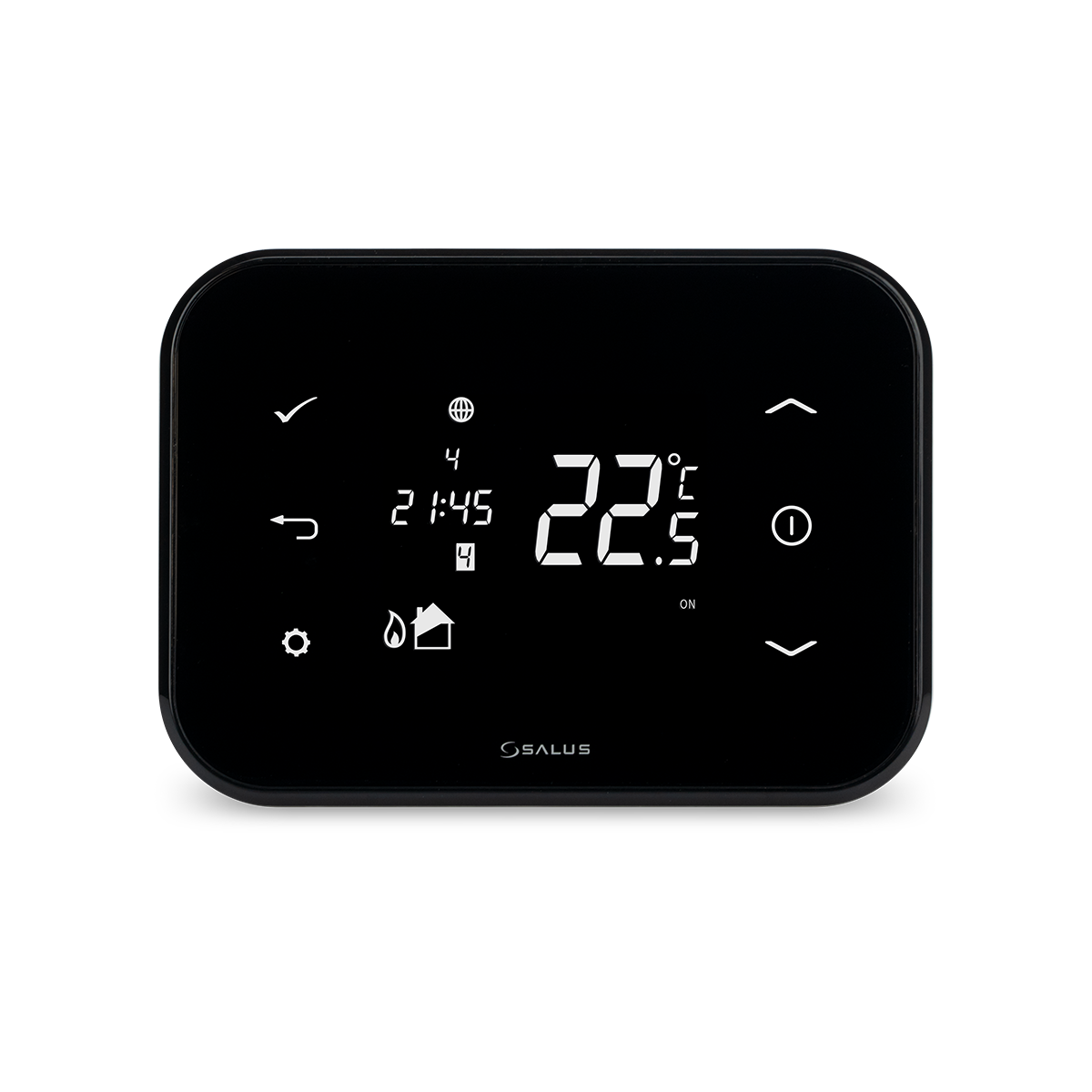 Pe afișajul digital se regăsesc pictograme cu funcții specifice, cum ar fi afișarea zilelor din săptămână (1 fiind reprezentarea pentru ziua de luni), temperatura setată sau măsurată, ora, numărul programului activ, modul de încălzire pornit, zona în care sistemul de încălzire este pornit, indicator pentru apă caldă, indicator pentru producția de apă caldă pornită, indicator pentru transmiterea semnalului RF către receptorul iT500RX sau primirea semnalului de la iT300, activarea touch (tastatura blocată), baterie descărcată, mod de vacanță activ, mod de răcire activ, activarea permanentă a preparării de apă caldă menajeră, activarea preparării de apă caldă menajeră o singură dată, modul automat de lucru al termostatului, termostatul oprit și modul de setare. Cu iT500, ai la dispoziție 6 programe cu 6 temperaturi/zi și 6 intervale orare, pentru a-ți asigura confortul termic dorit.